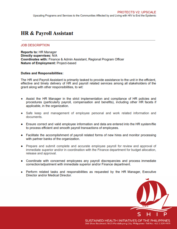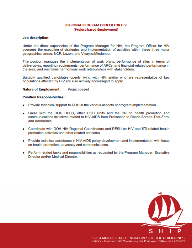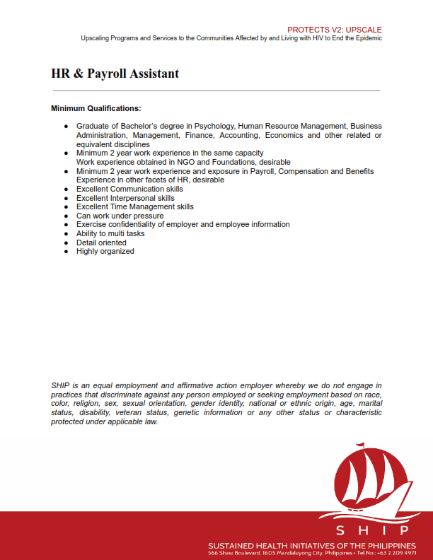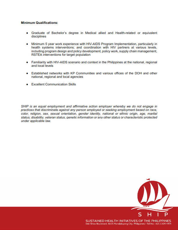 For inquiries and applications, kindly send to work@ship.ph, with the project (PROTECTS V2: UPSCALE) and position in the subject line.